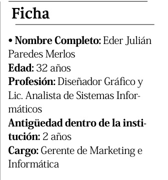 Eder Paredes es Gerente de Marketing e Informática en la Cooperativa del Sur y través de su trabajo, los socios y la comunidad pueden acceder a información de valor y educativa, que no solo les beneficia en lo financiero, sino que también contribuye a su desarrollo personal.